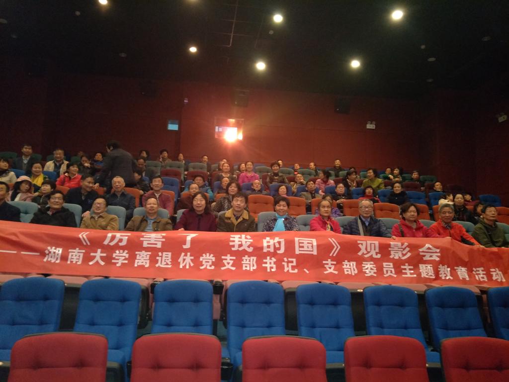 为了深入贯彻落实党的十九大精神,进一步激发广大党员的爱国主义热情和爱岗敬业的责任感,3月16日上午,离退休处党委组织离退休支部书记、支部委员和全体在职教职工党员共计100余人集体观看电影《厉害了 我的国》。