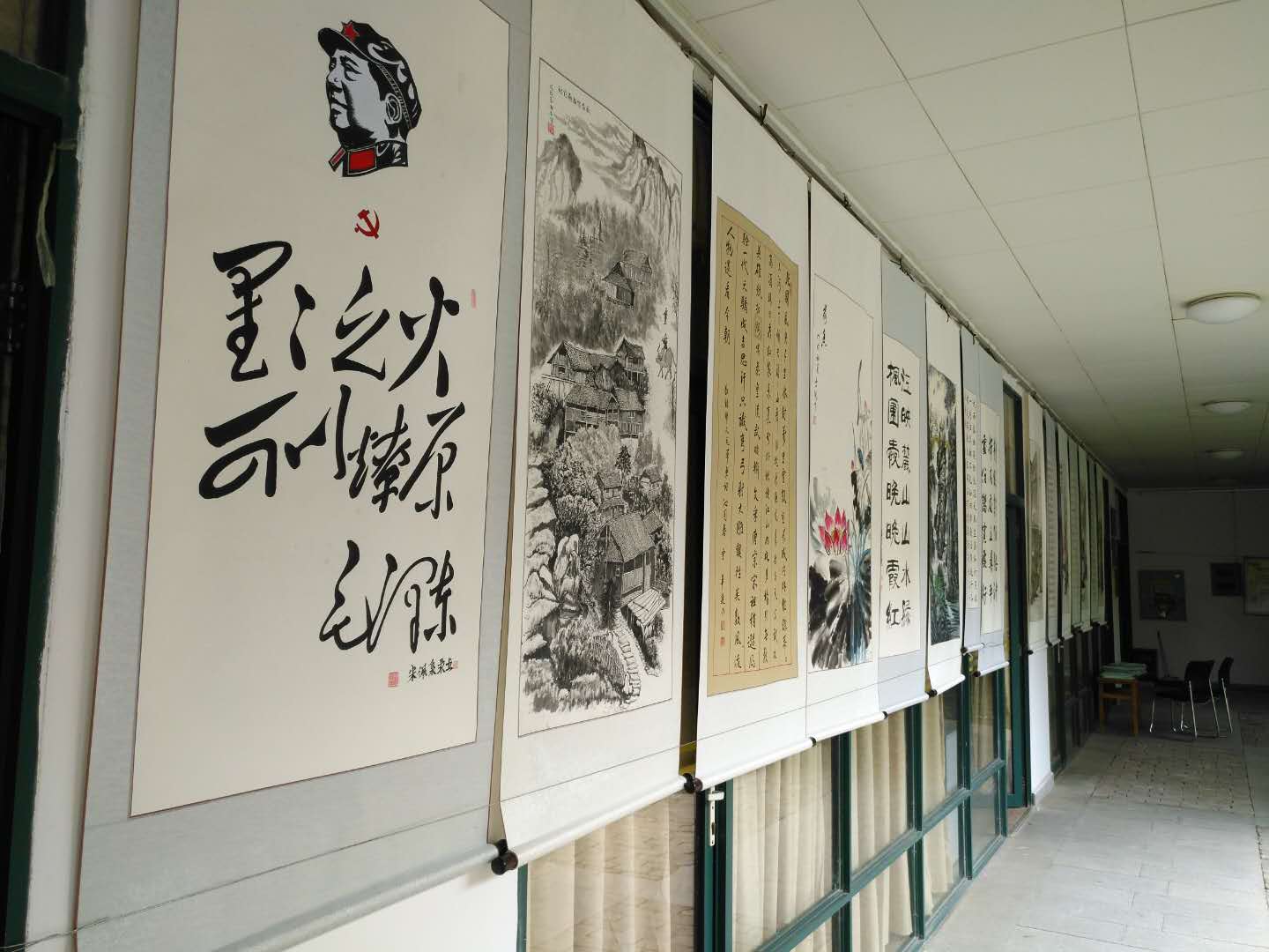 6月4日至8日,校老年书画协会在老年活动中心举办2018年上年度书画展。这次展出的主题是“走进新时代,共筑中国梦”,要求书协会员及书画爱好者围绕贯彻落实党的十九大会议精神和纪念改革开放40周年进行作品创作。此次展出共收到参展作品98幅,因展出场地所限,选展出作品81幅,其中书法作品26幅,绘画作品53幅。